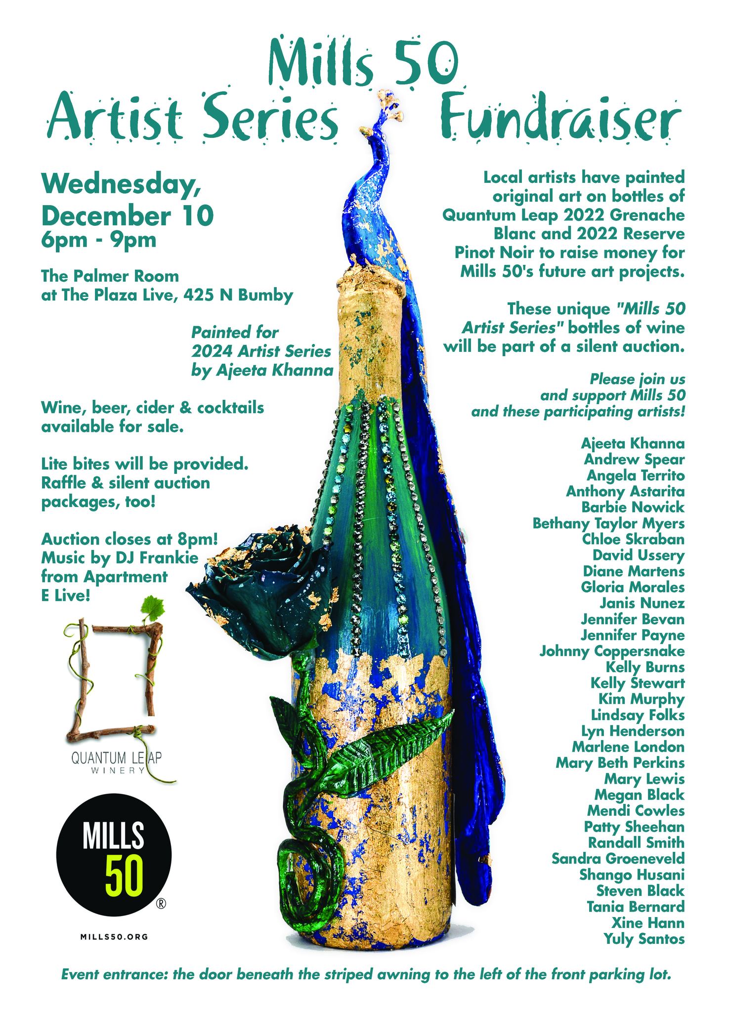 The Tenth Annual Mills 50 Artist Series is happening on Wednesday, December 10 from 6pm until 9pm in the Palmer Room at Plaza Live, 425 N Bumby.