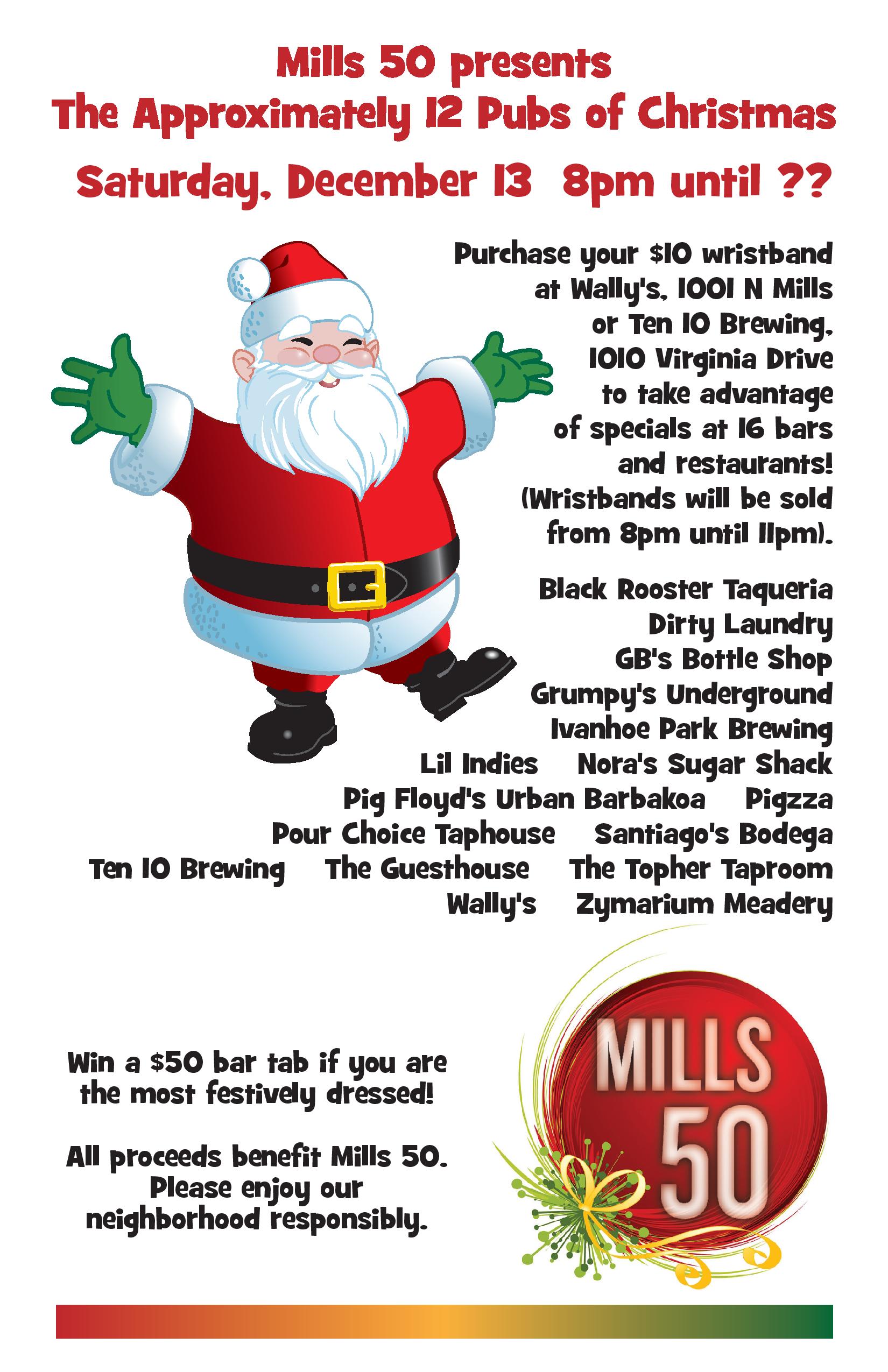 Get in the “spirits” of the season at our annual Approximately 12 Pubs of Christmas Pub Crawl on Saturday, December 13 starting at 8pm.